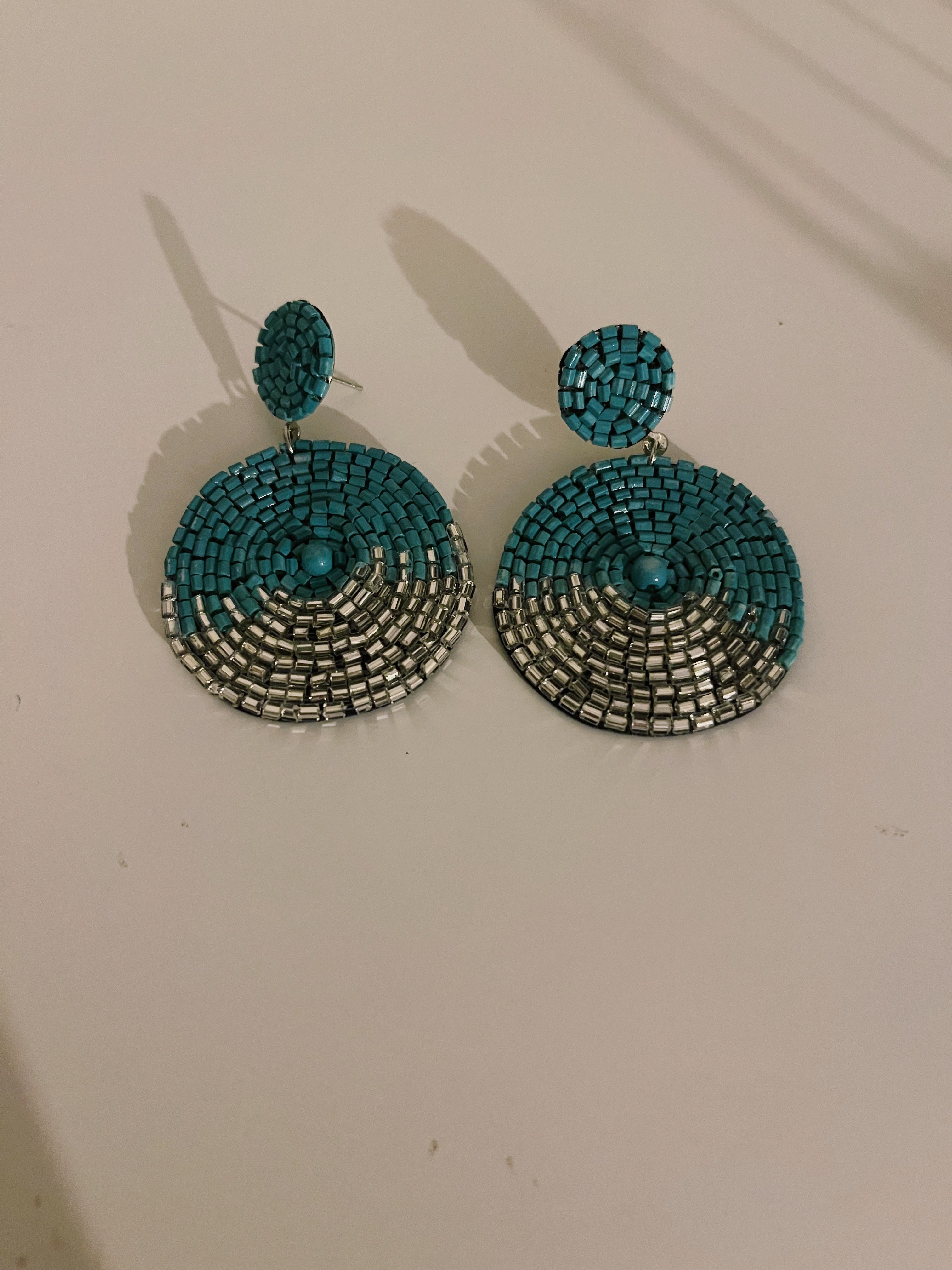 Turquoise & Silver Seed Bead Earrings