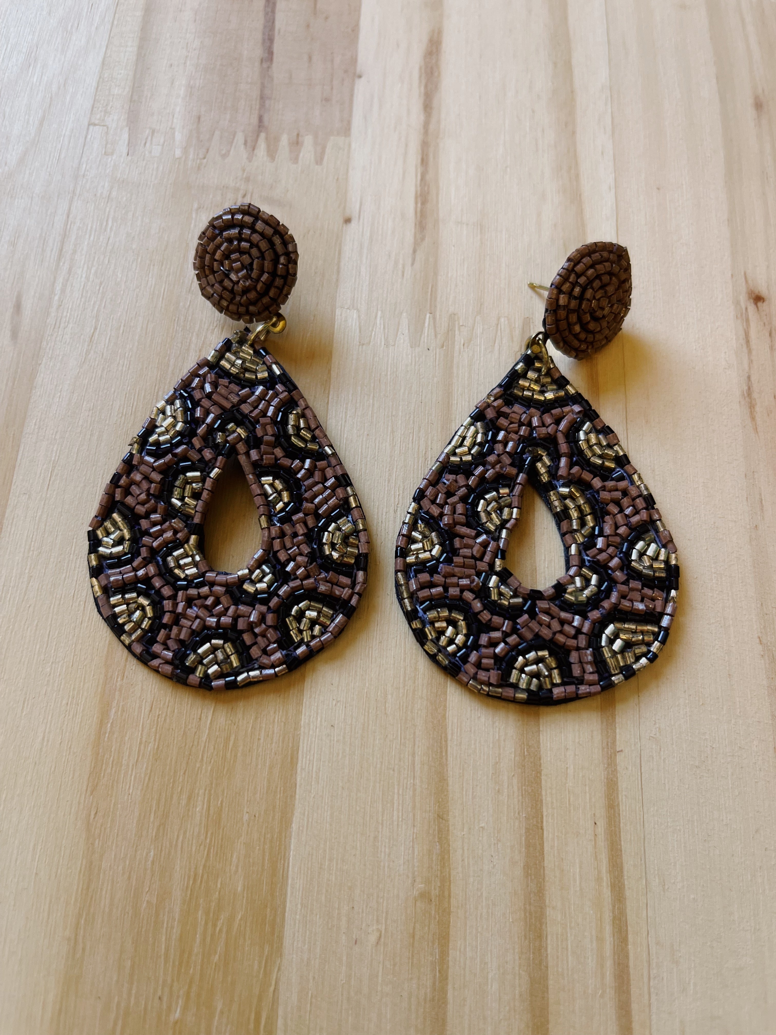 Leopard Tear Drop Seed Bead Earrings
