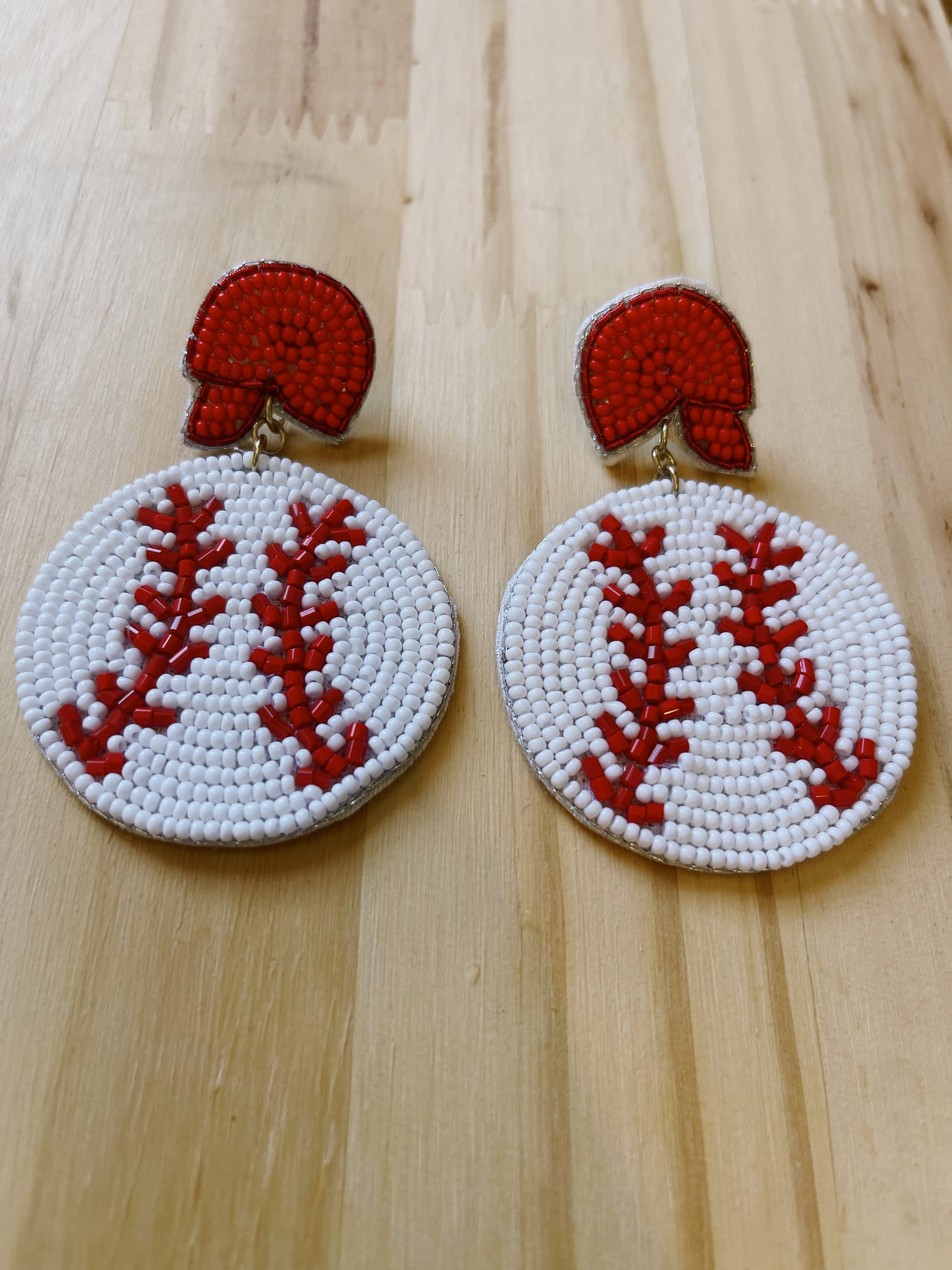 Red Baseball Helmet Seed Bead Earrings