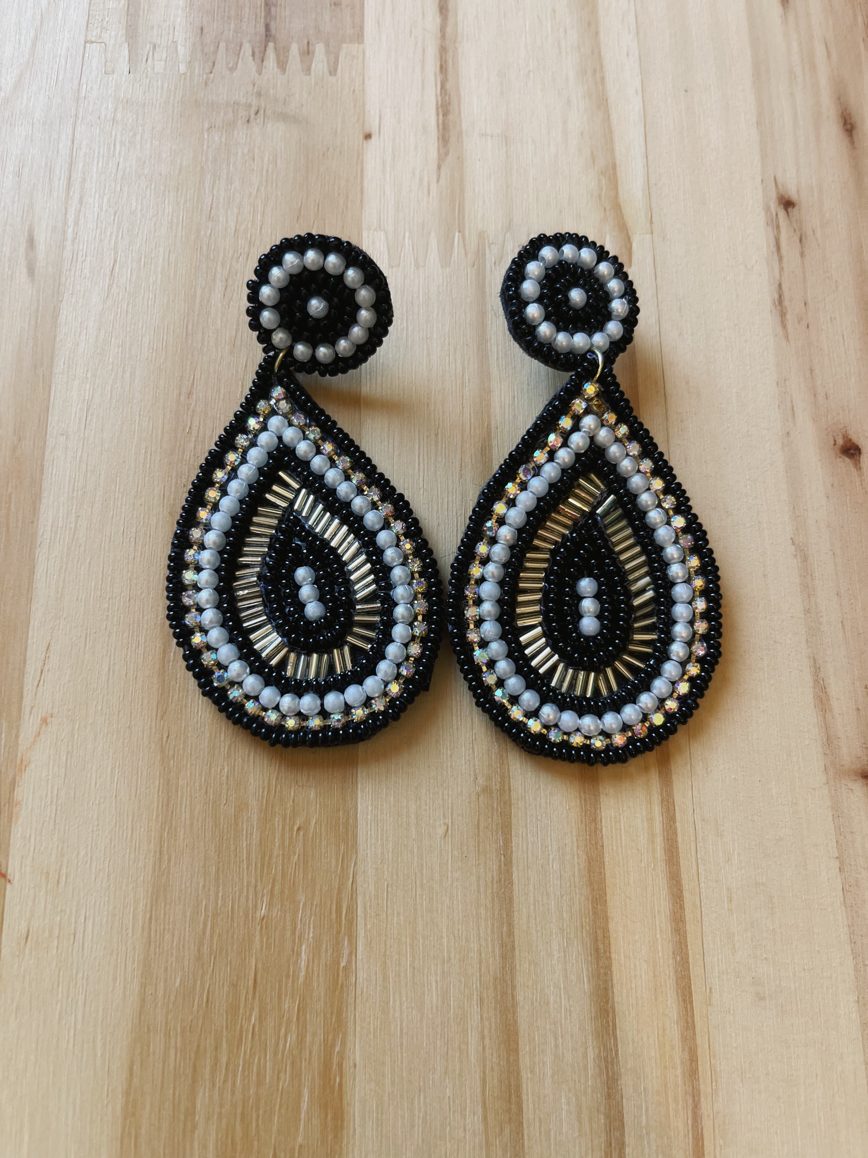 Black Multi Seed Bead Earrings