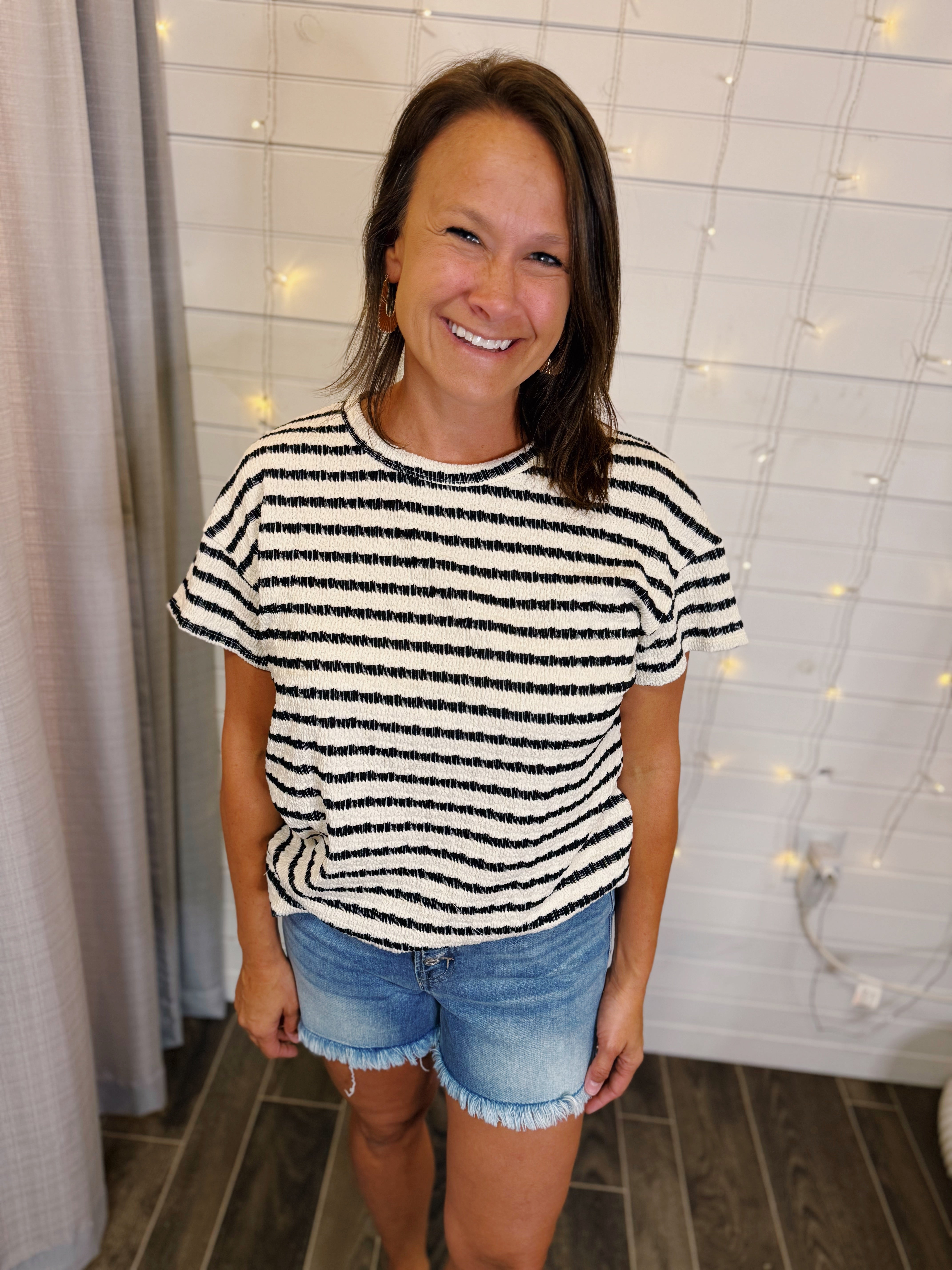 Cream and Black Striped Top