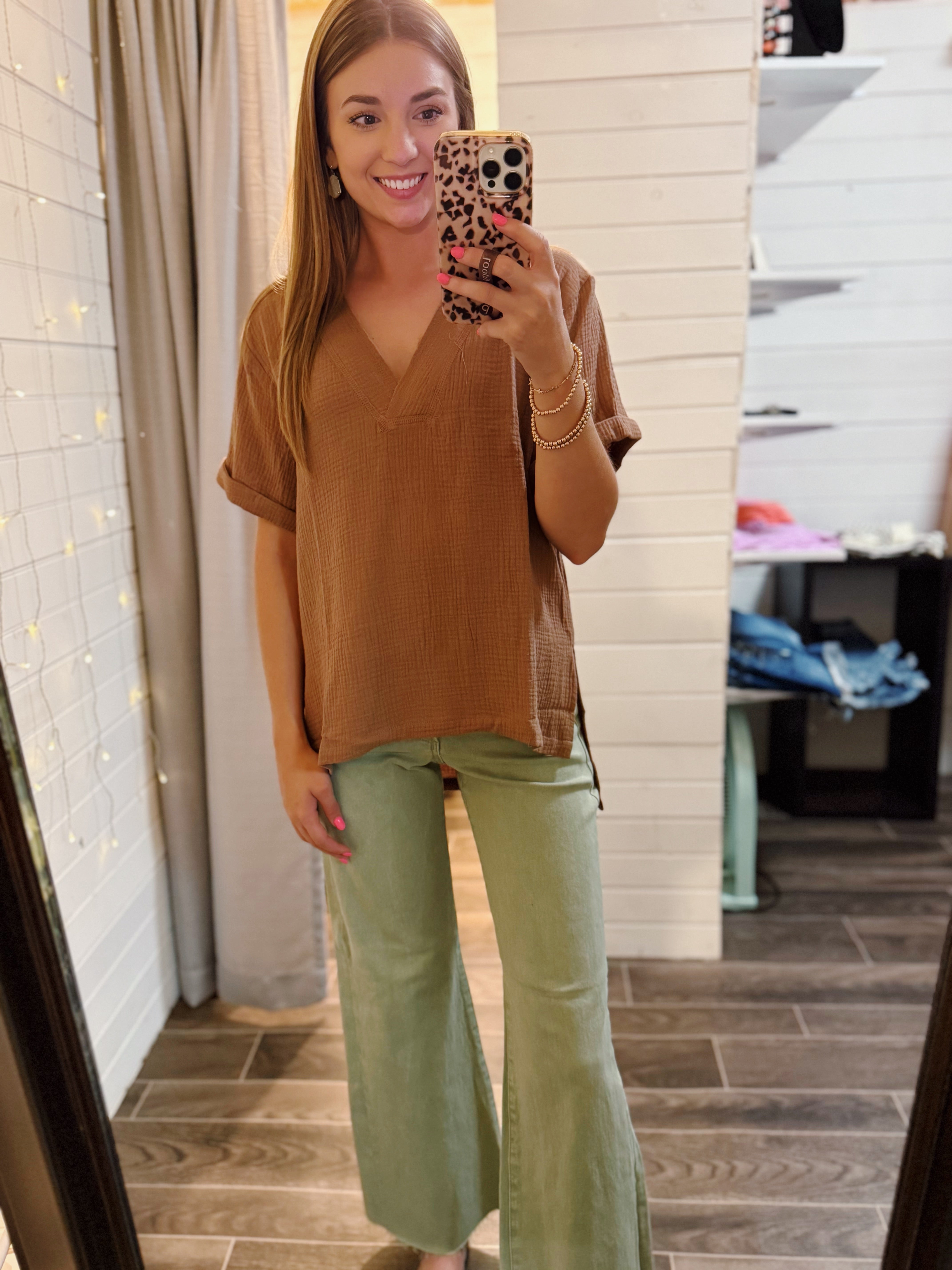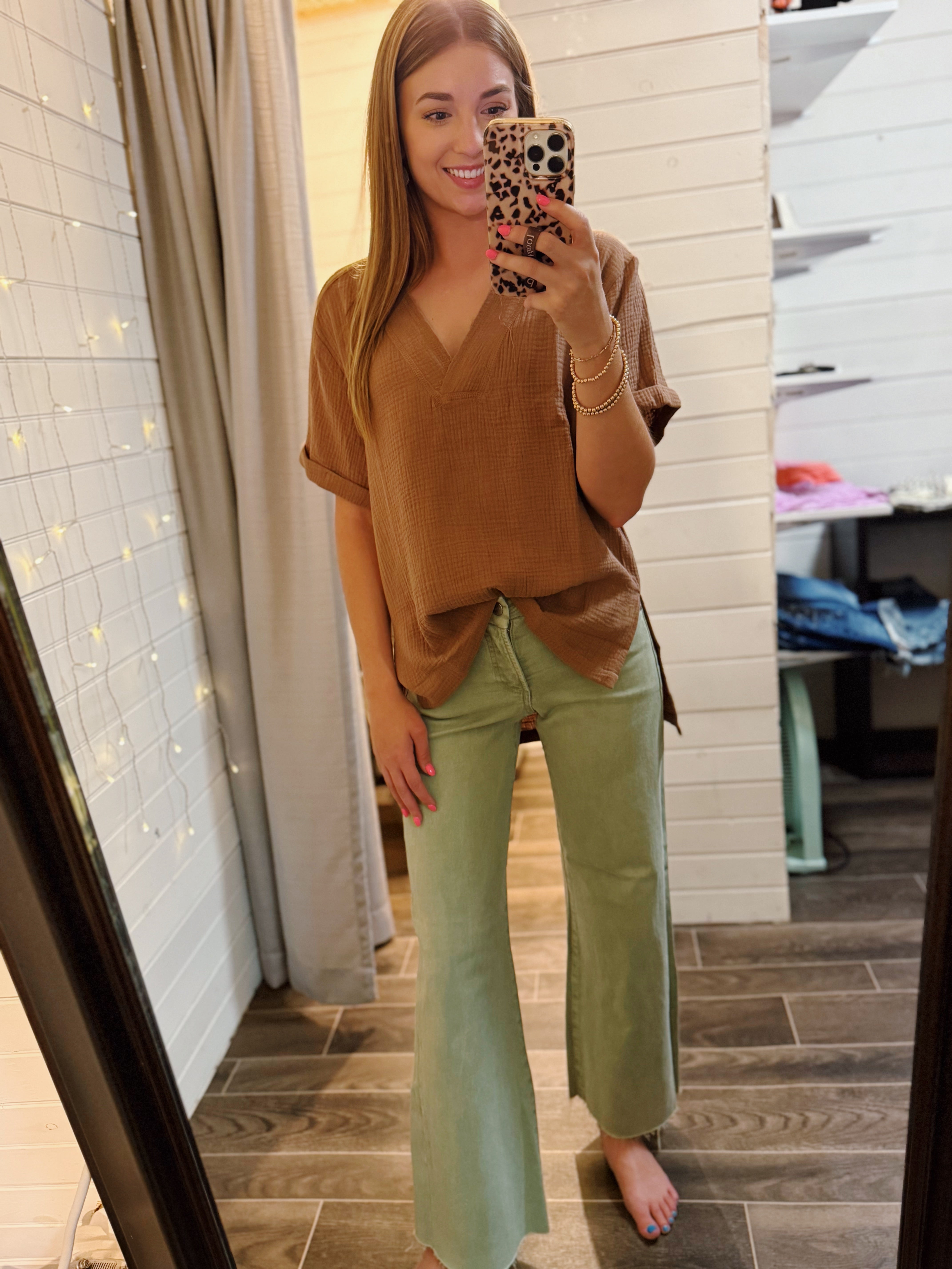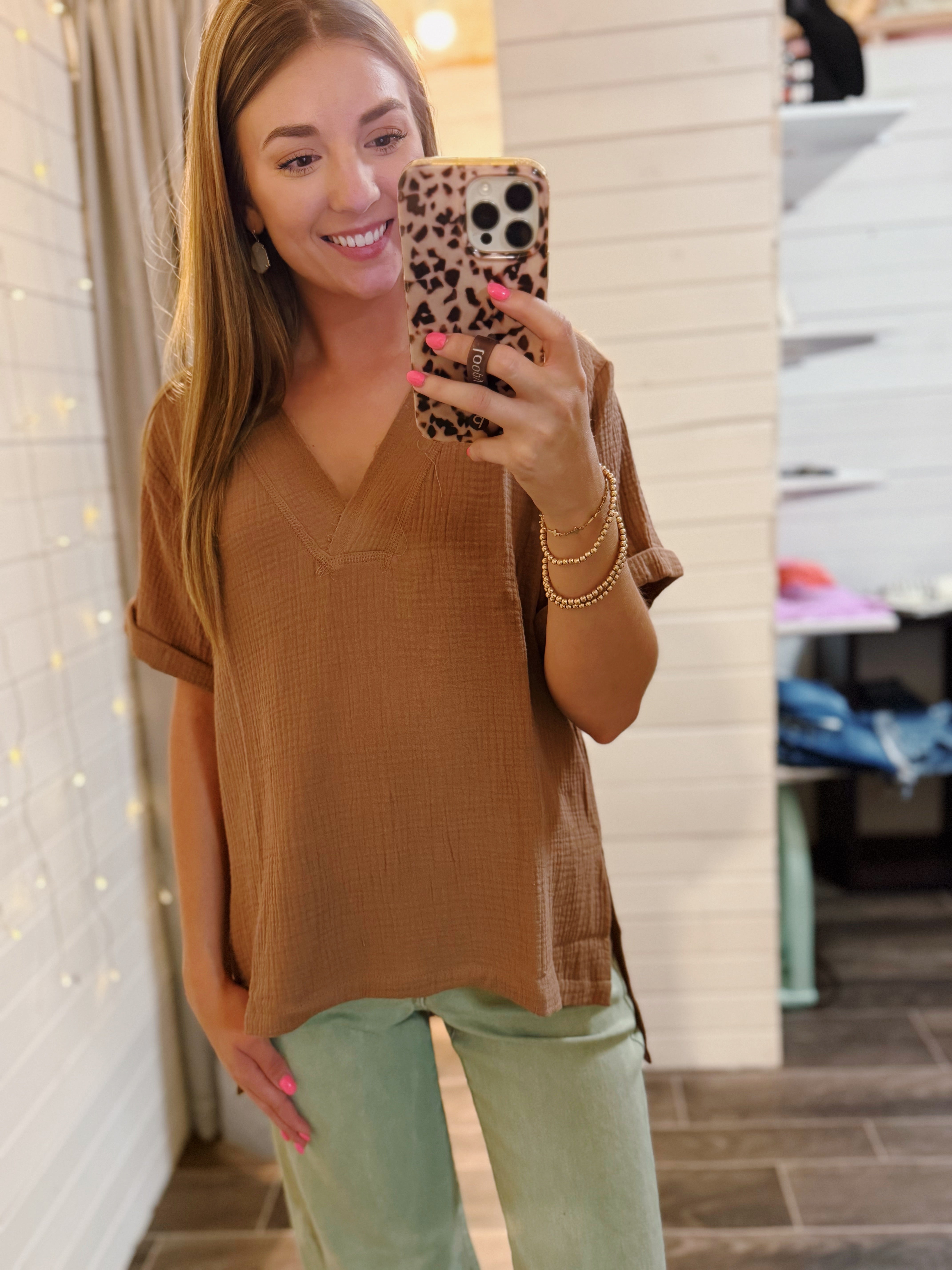 Mocha Short Sleeve Linen Top