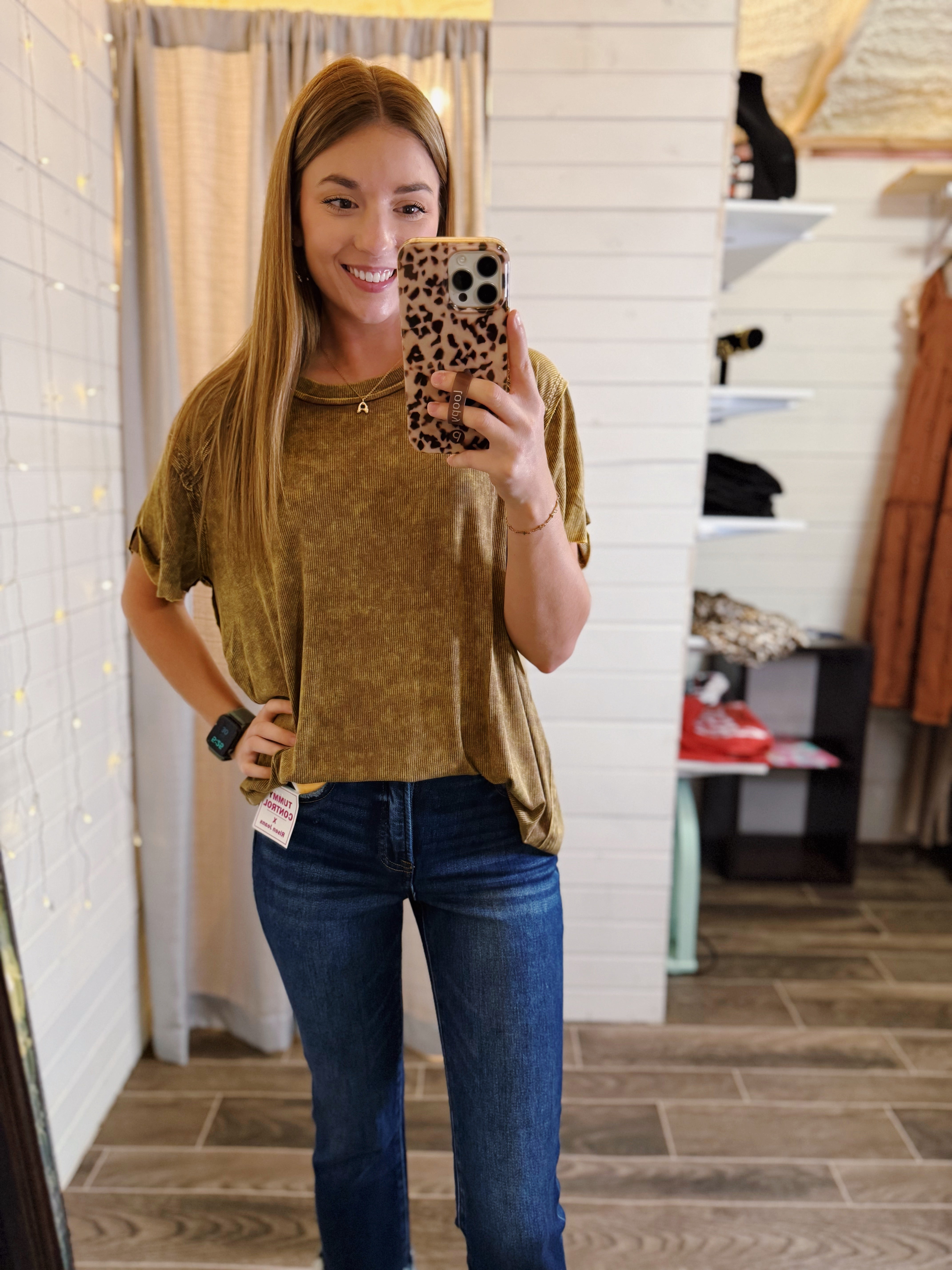 Brown Ribbed Oversized Top